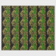 Truly elegant holiday paper with a gorgeous pattern of green shaped Christmas trees with a black background and faux gold foil swirl accents.