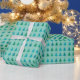 Green Christmas tree wrapping paper in green + blue colour combo! Make your next holiday gifts stand out with this beautiful wrapping set!