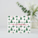 Green Christmas Trees & Red Snowflakes Pattern Holiday Postcard