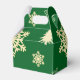 A colourful Christmas gift box featuring a pattern of cream snowflakes, Christmas trees and swirls scattered over a traditional green Christmas background to add a touch of class and style to your Christmas gift giving this year.