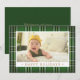 The classic look of this card will be an elegant way to send holiday wishes to friends and family. A green plaid pattern surrounds a white frame, suitable for your favourite horizontal photograph. The front features space for one line of text (example reads "Happy Holidays") and the back side, printed in a coordinating green, lets you personalise the card with your own greeting and family information using the easy provided templates.