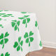 Green clover leaves pattern on white tablecloth