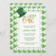 Lucky One first birthday invitation with whimsical typography and lucky elements including a hat and green clover leaves. This elegant and adorable 1st birthday invitation is for a lucky boy or girl and perfect for St Patrick's Day or Irish theme.