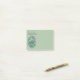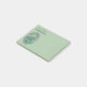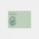 Personalised text is featured on this post-it note pad that is embellished with pastel artwork depicting three leaved clover or shamrocks in soft green on a muted purple background.