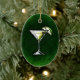An elegant design of a cocktail in a cocktail glass against a bottle green, absinthe inspired background colour.