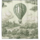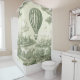 A classic Toile de Jouy pattern shower curtain in deep muted green featuring rolling countryside scenes, charming village details, and vintage hot air balloons drifting above the landscape. This elegant monochromatic design captures a timeless French aesthetic. Ideal for lovers of traditional décor, cottage style, travel-themed art, and unique vintage-inspired gifts.