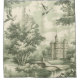 A classic Toile de Jouy pattern shower curtain in deep muted green featuring rolling countryside scenes, charming village details, and vintage hot air balloons drifting above the landscape. This elegant monochromatic design captures a timeless French aesthetic. Ideal for lovers of traditional décor, cottage style, travel-themed art, and unique vintage-inspired gifts.