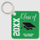 Add your graduation year for a unique high school senior gift idea. Order them for the entire high school graduating class. Perfect incoming incoming high school seniors as back-to-school gifts. If you are looking for graduation party favours, ideas, or small graduation gift ideas gifts then these green custom keychains are perfect. Save money when you order in bulk for graduating high school seniors. Green, black, and white school colour design graduation items are hard to find. Match with fun green graduation cap school colour napkins, plates, and invitations.