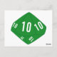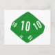 D10 Table Number Postcard--Table 10 Double-sided Geeky and offbeat D10 table number postcard featuring a D10 ten-sided dice in green. This quirky and fun table number card is double-sided so make sure to change the numbers on both sides. Easy to customise, change the numbers for the appropriate table number(s). Click "Customise It" to find more personalisation options.