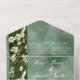 This floral design combined the green watercolor background accented with picture of daisies (that I took personally) is perfect for modern style weddings. The texts are for a Catholic wedding but can easily be personalised and customised to your type of ceremony. This all in one invitation has the details included as a tear off bottom card, which is both practical and stylish. If you like this floral theme, please check out the other stationery with this same style.