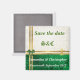 Easily personalise this traditional wedding style Irish green and cream damask and gold ribbon with vintage damask pattern with gold coloured ribbon , fleur de lys and bow for your special wedding day.