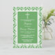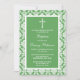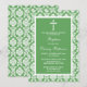 Green Damask Cross Baptism, Christening Or First Holy Communion Invitations.