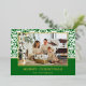White and green damask pattern, your greeting, names and your photo bordered in real gold, silver or rose gold are featured on these holiday photo cards. Select Matte for heaviest paper and High Definition for best photo quality. Be sure to double-check your order before adding it to your cart as what you see on the screen is what will be printed. The Live Design Service can help you with your design layout if needed.