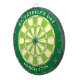Dartboard in dark and light green and two custom text areas. Removable shamrock over bull's eye. Irish design.