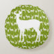 This pretty deer design round pillow is perfect for anyone who loves deer, animals, wildlife,and fun designs! Features several small rustic white deer silhouettes on a background of bright green with a big white silhouette doe on front, buck on back. This deer pillow is perfect for the living room, den, family room, family cabin on the lake, and of course it makes a great gift.