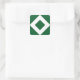 A bold, geometric pattern with a green diamond in the centre surrounded by a white diamond that is flanked by 4 green triangles in the corners.