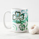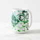 A green diamond gemstone is the centerpiece of this mug with intricate designs and clovers.trendy and stylish