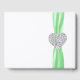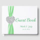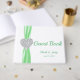 Elegant diamond heart with a green ribbon decorate this guestbook. Wedding guest books are fun for both the couple and their celebrants. Invite attendees to leave you well-wishes at your reception, and you're guaranteed to have a keepsake to look back on for years to come. Plus, your guests will get to leave their mark on your event, not to mention put in writing whatever they didn't have a chance to express in person on the big day. Personalise the book by changing the text in the fields provided. You can change font style, size, and colour.
