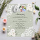 For an elegant and romantic 60th wedding anniversary. A sage green background decorated with white florals, roses, faux diamonds and white lace. Personalise and add your photo, names and details.