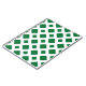 A bold, geometric pattern of large and small green diamonds on a white background. The white forms a lattice which separates the diamond shapes.