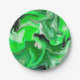 Green and black marble art digital pour painting cells birthday party paper plates.