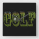 Green Dimensional Golf Word With Balls, Square Wall Clock