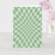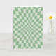 An elegant abstract distorted checkerboard pattern cushion in shades of green colours.