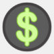 Currency stickers featuring a green dollar sign or symbol on a grey and black background. Available in many colours.