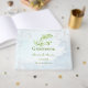 Record the guests to your big day with a Green Dolphin Wedding Day Guestbook. Guestbook design features a metallic styled dolphin against a muted ocean waves background adorned with elegant scrolls. Additional wedding stationery available with this design as well.