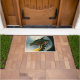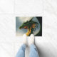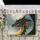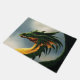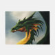 Portrait profile of a green dragon. blue skies in behind the dragon.