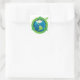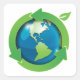 A green earth globe with green arrows around it. This design looks really effective on these Stickers