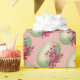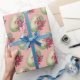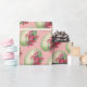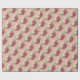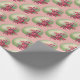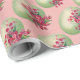 Wrapping paper with green coloured Easter Eggs, pink flowers, on pink background.