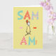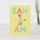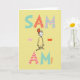 Don't knock it until you try it, you might just like it! GREEN EGGS AND HAM is a classic Dr. Seuss story where Sam-I-Am tries to get his friend to try some green eggs and ham, and he does indeed end up loving them. Check out Sam-I-Am holding up a sign with his name on it.