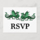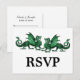 Perfect for a sophisticated fantasy tabletop game themed wedding is this nerdy and unique Elegant Dragons Wedding RSVP Postcard featuring a vibrantly coloured pair of green dragons. Easy to customise, simply add your wedding details in the text fields provided. Click "Customise It" to find more personalisation options.