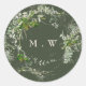Green Elegant Eucalyptus Wreath Monogram Wedding Classic Round Sticker