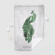 Personalise a unique towel for golfing with a Green Elegant Peacock Personalised Golf Towel. Towel design features a vibrant peacock adorned with delicate foliage against a light grey grunge background. Additional gift items available with this design as well as a variety of colours.
