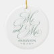 Green Elegant Script Newlywed Christmas Ceramic Tree Decoration