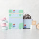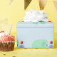 A cute design featuring green elephants balancing plates and a ball on their trunks. Soft coloured stripes on a solid background.