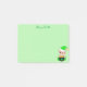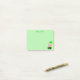 Cute green elf with gold coins and lucky shamrock on green Post-it Notes. Text can be personalised.