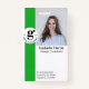 Sleek and professional green employee ID badge featuring a large customisable photo, name, job title, company logo, and unique QR code. Includes printed ID number and return information on the back. Ideal for consultants, teams, business staff, or corporate events.