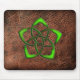 Green enameled celtic flower on leather mouse mat
