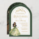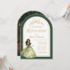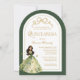 Invite your guests to a magical celebration with this enchanting Quinceañera invitation! Featuring a beautiful brunette princess in a stunning green gown adorned with golden butterflies, this design sets the stage for a fairytale evening. The elegant arch and golden bow details add a touch of regality. Personalise the template with your daughter's name and all the important party details and then upload a cherished photo of the birthday girl to the back to create a truly memorable keepsake. © Kimbellished, LLC