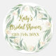Green eucalyptus floral bridal shower name date go classic round sticker