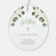 Watercolor eucalyptus greenery leaves and a classy handwritten style calligraphy script making a beautiful boy or girl baptism personalised Christmas keepsake white tree ornament.