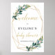 Green eucalyptus gold geometric frame welcome sign