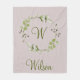 Green Eucalyptus & Leaf Wreath Script Monogram Fleece Blanket