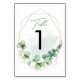 Green Eucalyptus Modern Elegant Wedding Table Number