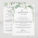 This green eucalyptus wedding welcome letter is perfect for a modern wedding. The design features watercolor hand-drawn elegant botanical eucalyptus branches and leaves, adorning geometric frames.