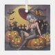 Green Eye Halloween Witch on Jack-O-Lantern's Glass Tree Decoration