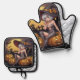 Green Eye Halloween Witch on Jack-O-Lantern's Oven Mitt & Pot Holder Set